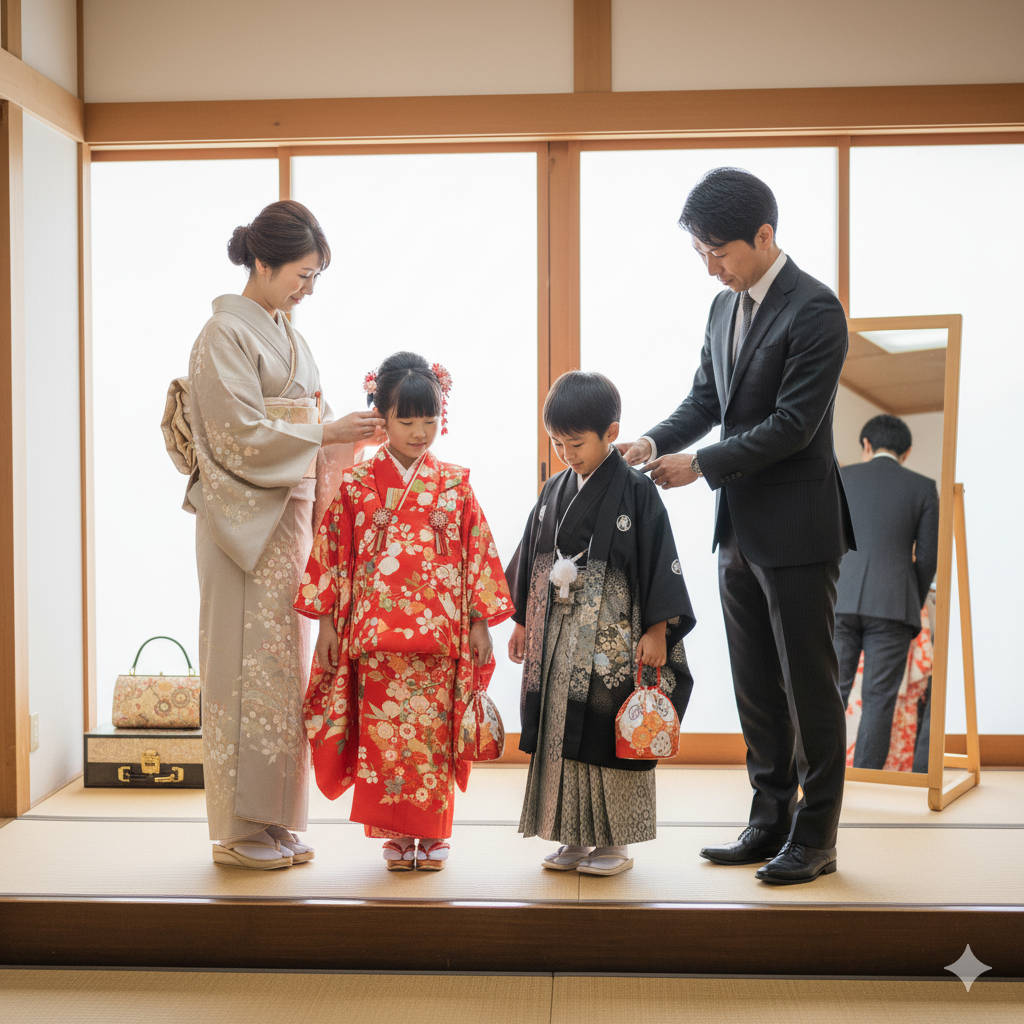 特に、和装を選ぶ場合はご両親の着物の格や色合いにも気を配ることが大切です。母親は訪問着や色無地、父親は紋付袴やスーツなど、場にふさわしい装いを選びましょう。また、足元や髪型、小物のトーンも揃えておくと、写真に一体感が生まれます。兄弟姉妹がいる場合は、その子たちの服装も含めて事前にしっかり準備を。全員がしっかり整った姿で写ることで、家族の絆がより一層伝わる素敵な一枚に仕上がりますよ。